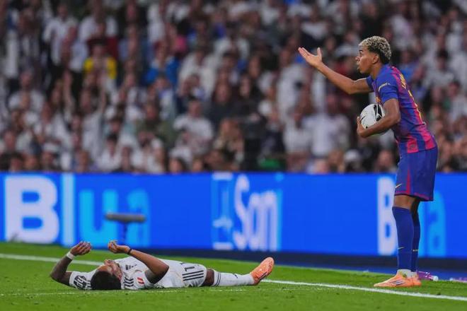 雷速体育10月27日讯 西班牙国家德比,皇马2-1击败了巴萨,赛后还发生了皇马球员与亚马尔发出冲突的一幕。原因是皇马球员对亚马尔此前说皇马“一边偷盗,一边抱怨”的言论不满。