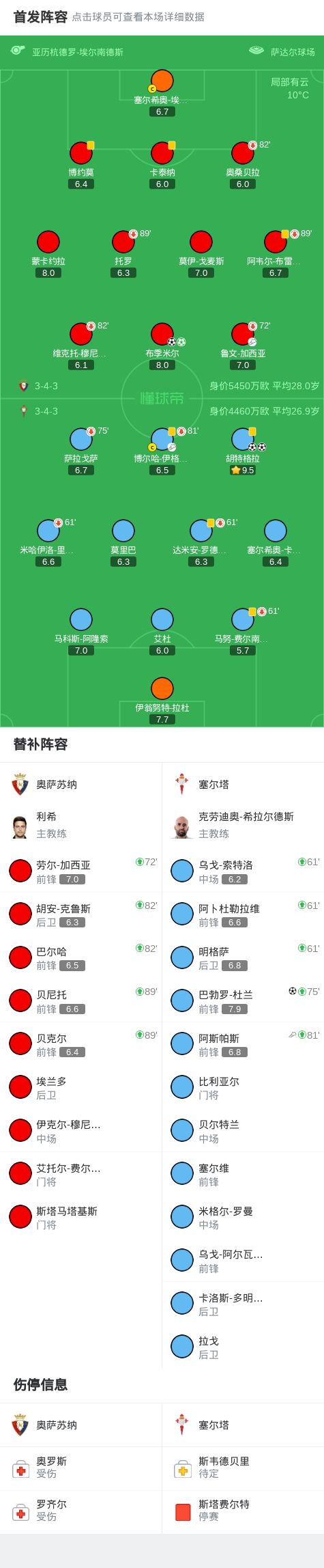 塞尔塔3-2奥萨苏纳,胡特格拉两球,巴勃罗-杜兰破门